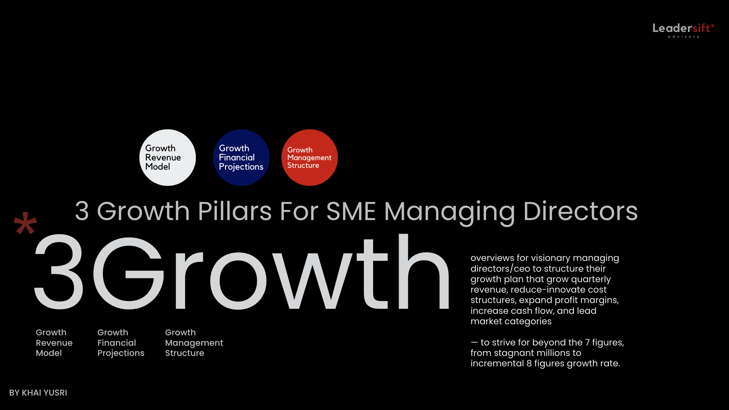 At Leadersift Advisory, we help visionary SME Managing Directors of RM2 million ~ RM40 million in Annual Revenue move beyond gut-driven operations to build clear, structured quarterly growth plans — to not only grow profit, but to scale an organisation with strategy, performance, and predictability.